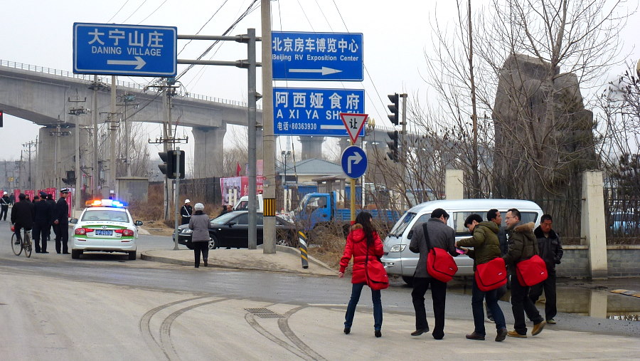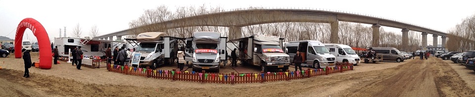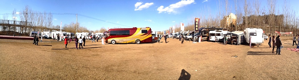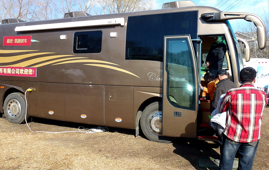 Hehe RV aus dem nördlichen Dalian importiert US Wohnmobile und Luxus-Kleinbusse. Ihr Ausstellungsplatz war abgezäunt, was wohl die Exklusivität erhöhen soll, und es wurden nur besondere Gäste reingelassen, wir gehörten nicht dazu, deshalb nur Bilder von draussen.