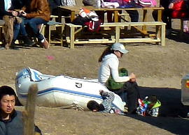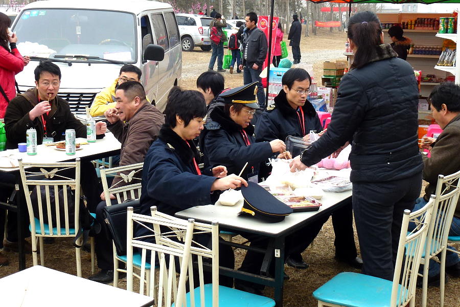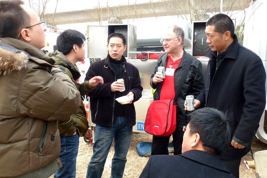 Die Roten Ameisen, ein großer Club aus Peking, mit vielen verschiedenen Freizeitfahrzeugen, sehr nette aufgeschlossene Leute (wie alle Camper). Die Chefs haben uns spontan zum Mittagessen eingeladen. Wir konnten interessante Diskussionen führen. Mit diesen Leuten würden wir gerne ein paar Tage auf der Strasse verbringen.