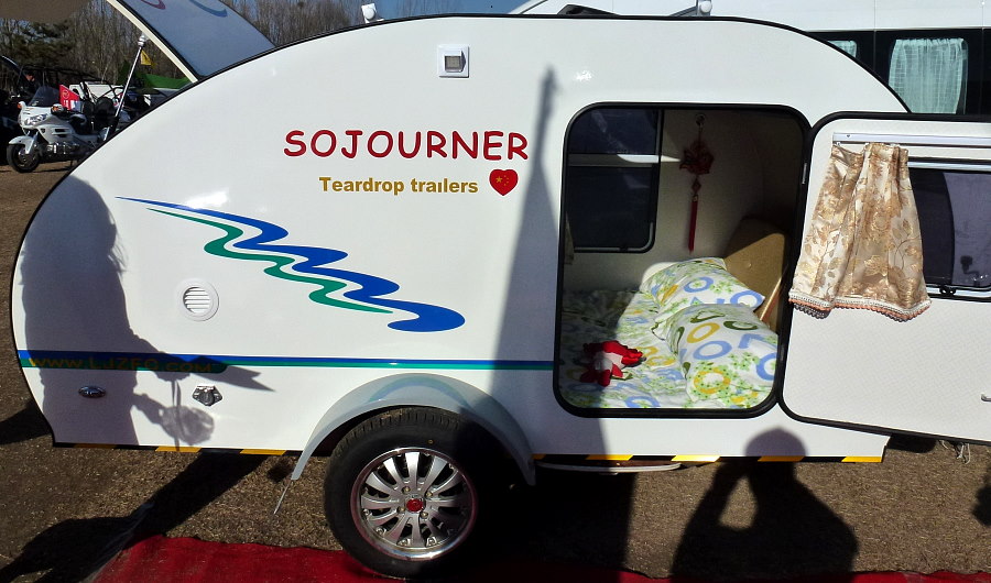 Die Firma Sojourner aus Peking stellt Wohnwagen her die in der Form unserem @TAB ähneln allerdings kleiner sind. Eigentlich ist es mehr ein 'Schlafwagen' als ein Wohnwagen, denn der größte Teil des Lebens findet vermutlich ausserhalb der Kabine statt, trotz hochwertiger Stereo Anlage und großem Flatscreen.