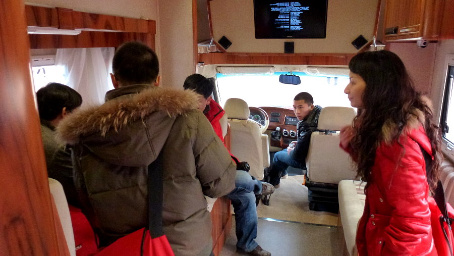 Dalian Lakeside zeigt luxoriöse vans mit gehobener Business Ausstattung, mit bequemen Sesseln und geschmackvoller Inneneinrichtung. Unser justin wollte garnicht mehr aufstehen.