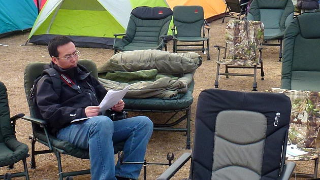 Herun stellt zusammenklappbare Sitz- und Liegemöbel aus sowie Zelte.