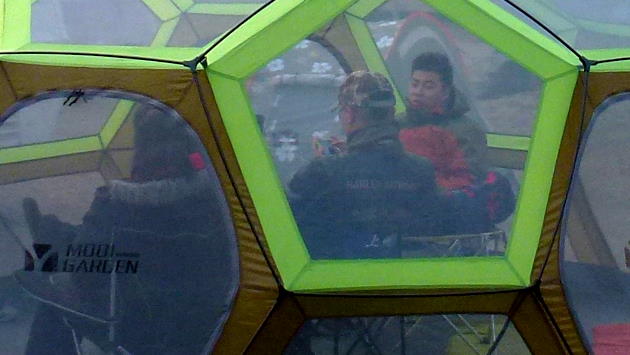 Outdooz hat Zelte in der Ausstellung.